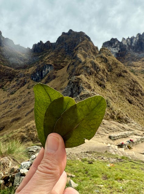This was also the day I tried chewing coca leaf for the first time. These leaves have been used in this region to combat altitude sickness and fatigue. The leaves contain a bunch of vitamins and minerals, along with many alkaloids, the famous one of which is cocaine. We learned that it takes somewhere around 50 kilos of leaves to produce 1 gram of cocaine, so while coca leaves can be stimulating, it is no more than a cup of coffee might be. My first try felt like a fibrous leafy mess in my mouth. I was managing the leaves in my cheek while trying to navigate the stairs and breathe. (I can’t chew gum and pat my head at the same time either.) I know you aren’t supposed to swallow the actual leaves, but the liquid that comes from mixing with your saliva. When most of the wad was in my belly, I wondered if that was a problem. I asked Orlando, as if I were asking for a friend. 🙃 Turns out no. Coca leaf flour, for example, is used in baked goods—it can be eaten. (If only I could put that in our Natto Bite recipe.)