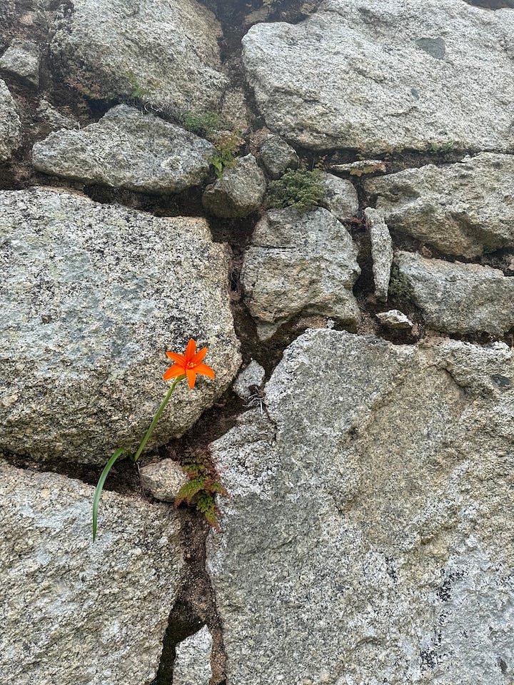 There were stairs, there were cobbles, there were more stairs, and more stairs. On this day there was only up. Some stairs required a zig-zag approach, steeper ones, there was nothing but hoisting yourself however you could. This day, more than any other, I found myself calculating every step by looking ahead and seeing where my foot falls would expend the least amount of energy. I found that when I was following Orlando, I wouldn’t have to make the decisions myself. I would watch his boots and follow the pattern. It was easier not to think. Plus, I figured with 800 or so times on this trail, he must know every stone.