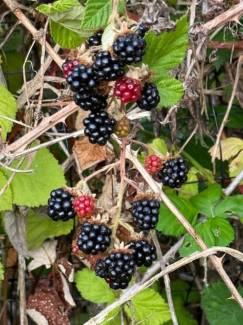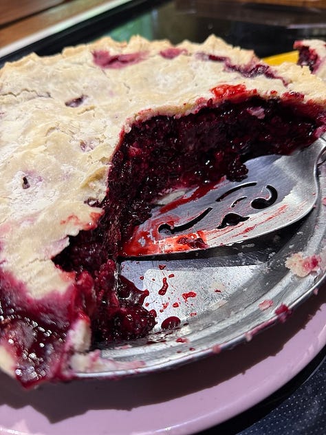 Our garden is down the hill and across the road from our home. We have to choose to go to the garden, as it is not a place in plain sight that we pass on our way to anything else. Over the heat wave, I started going to it three times a day, once in the early morning, in the middle of day to move shade cloth around, and finally after sunset. Now I am back to my early morning and evening tending. In the morning, it is more of a patrol round. Did the doe find a new way to get in, again? (Survey the damage to plants 🫣 and walk the fence line in hopes of finding the breach—patch.) Gopher damage? (Stomp on the tunnels near the plants…) Turkey damage? (Grumble.) Are the heavy pepper plants still upright? (Stake.) Did the soaker hoses on the dawn timer work? (We have hard water, and sometimes they plug partway through the season.)